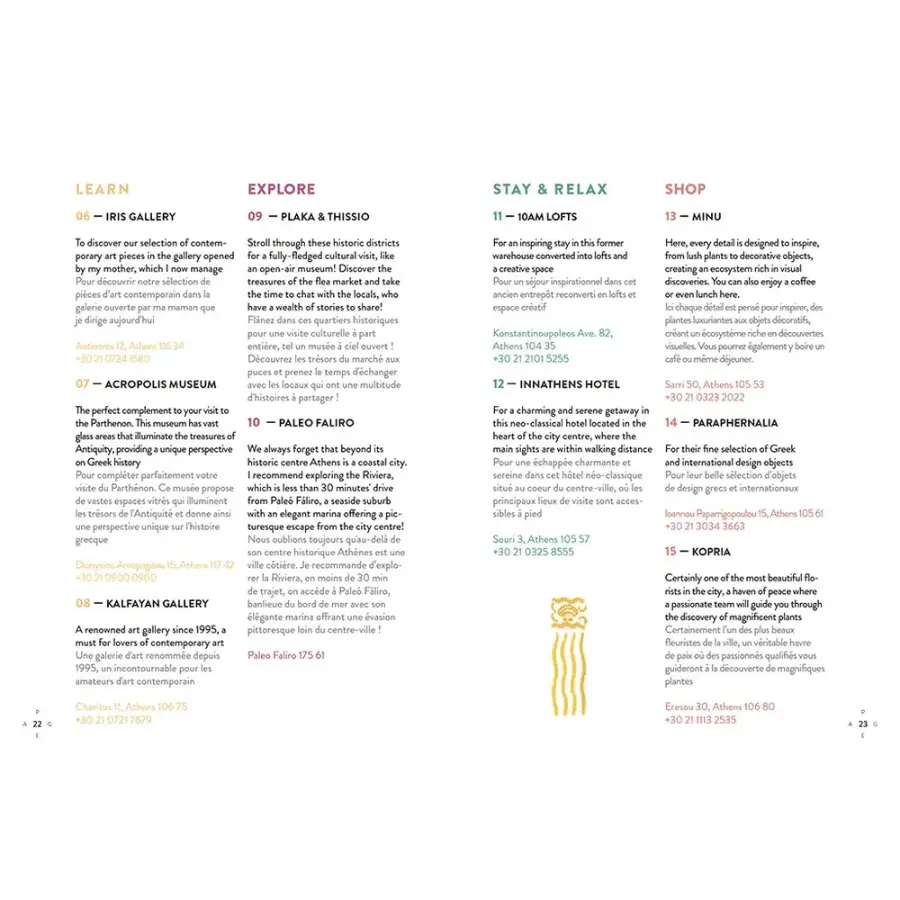 In this edition, we invite you to discover Athens and its surrounding region through the eyes of seven fascinating local figures: a bottarga producer, the directors of the Alekos Fassianos Museum, a hotelier, architects, a jeweler, the founder of Hydra Book Club, and the president of the active citizens of Aegina and a pistachio producer. Discover their portraits and all their confidential addresses in this bustling city, on the Athenian Riviera as well as on the islands of Aegina, Hydra, and Kea.