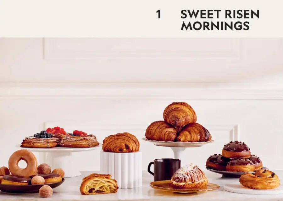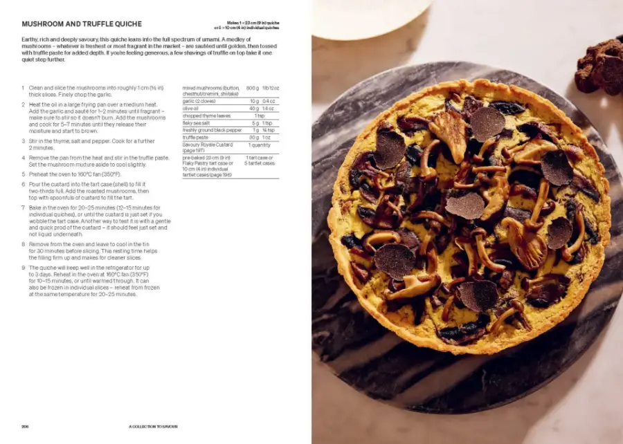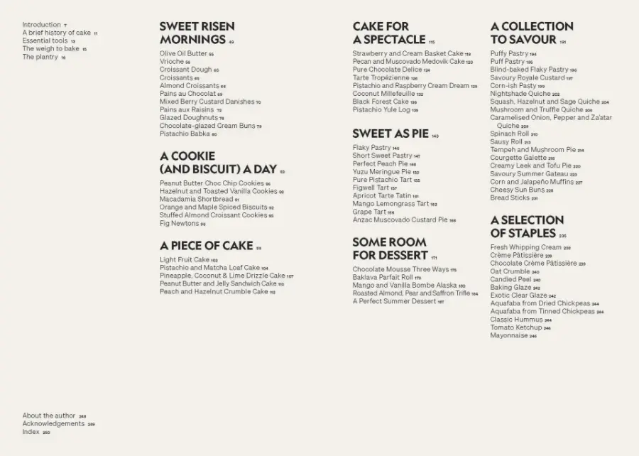 Inside, you’ll find easier bakes like Peanut Butter Choc Chop Cookies and Light Fruit Cake, showstoppers like Pistachio and Raspberry Cream Dream and Muscovado Medovic and a dedicated chapter on laminated pastries featuring Croissants, Almond Pain au Chocolat, and other sweet risen treats like glazed Doughnuts and Pistachio Babka. The savoury chapter brings deeply satisfying options like Corn-ish Pasties, Sausy Roll and Nightshade Quiche, all made with technical care and zero shortcuts.
