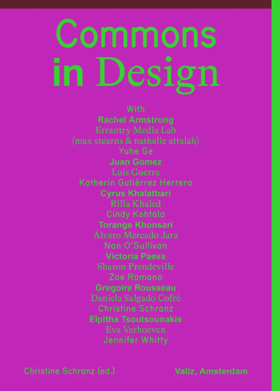 Commons in Design explores the meaning and impact of commons—especially knowledge-based peer commons—and acts of commoning in design.