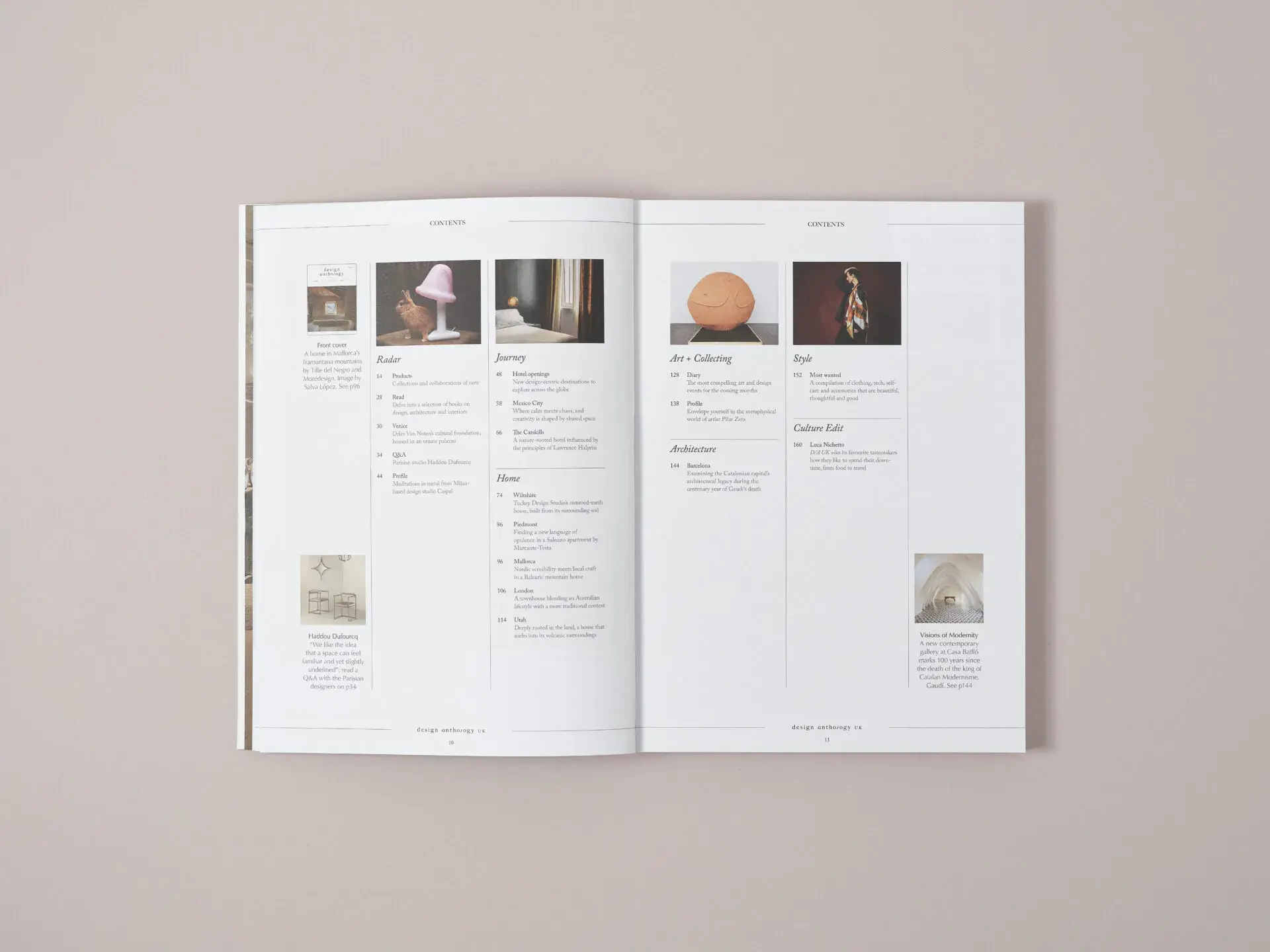 Elsewhere in issue 22, you will find features on the design and culture offer in Mexico City (p58); a new cultural foundation in Venice by fashion designer Dries Van Noten (p30); Barcelona architecture at the centenary of Gaudi’s death (p144); designer Luca Nichetto’s cultural edit (p160); plus, hotel openings around the world, our style picks, new design books to seek out, and the latest product design news.