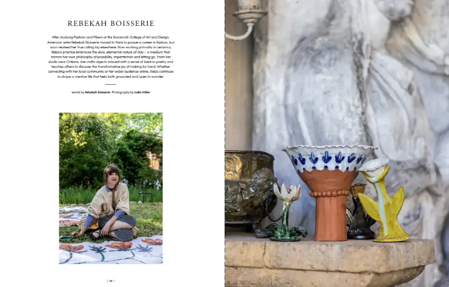Reba Boisserie is an American artist who now works primarily in ceramics, a medium that mirrors her own philosophy of possibility, imperfection and letting go. From her studio near Orléans, she crafts objects imbued with a sense of lived-in poetry and teaches others to discover the transformative joy of making by hand.