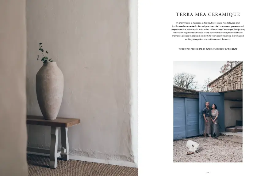 Neu Falguera and Jon Runsten are the founders of Terra Mea Ceramique. Their journey has woven together rich threads of art, nature and intuition, from childhood memories steeped in clay and creativity to years spent travelling, learning and making alongside communities around the world.