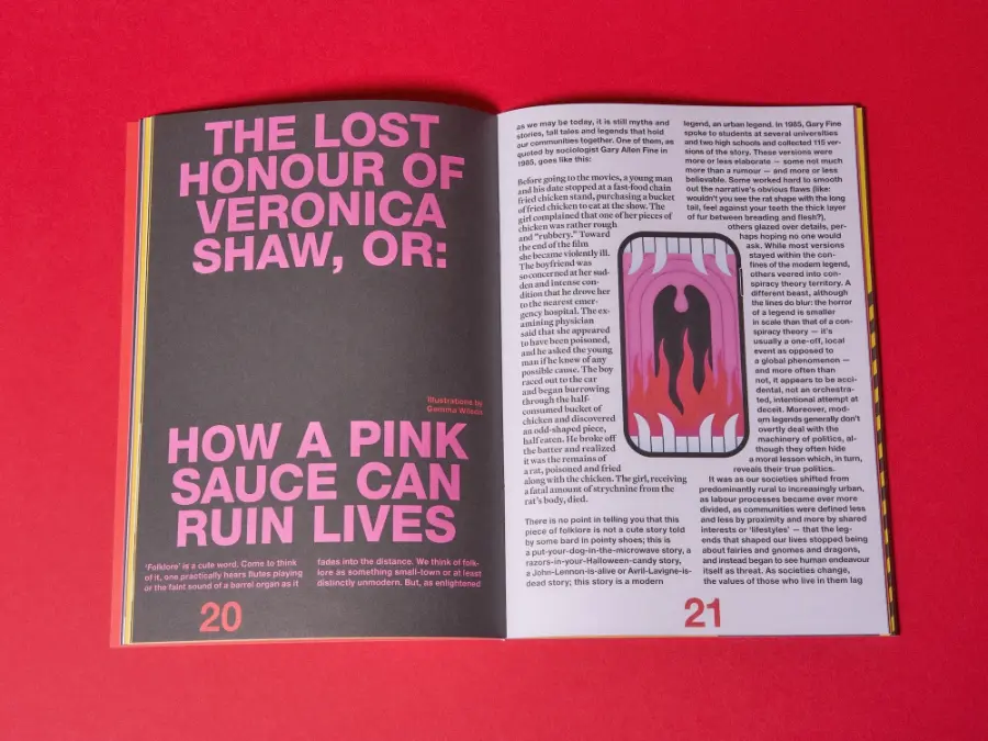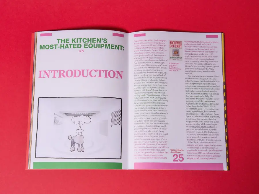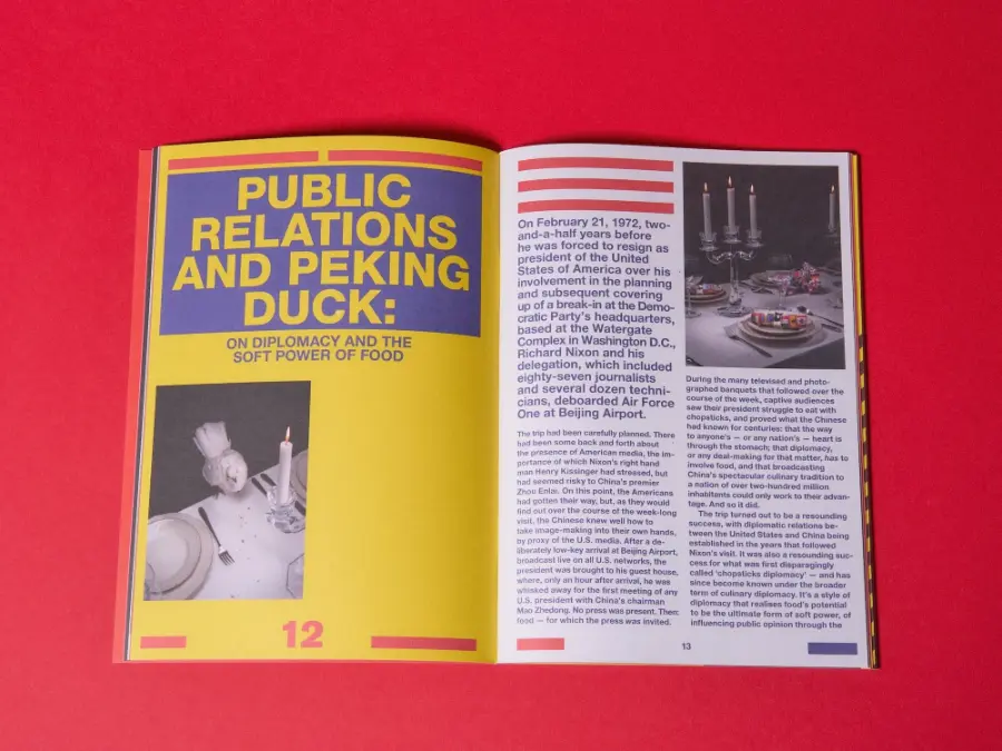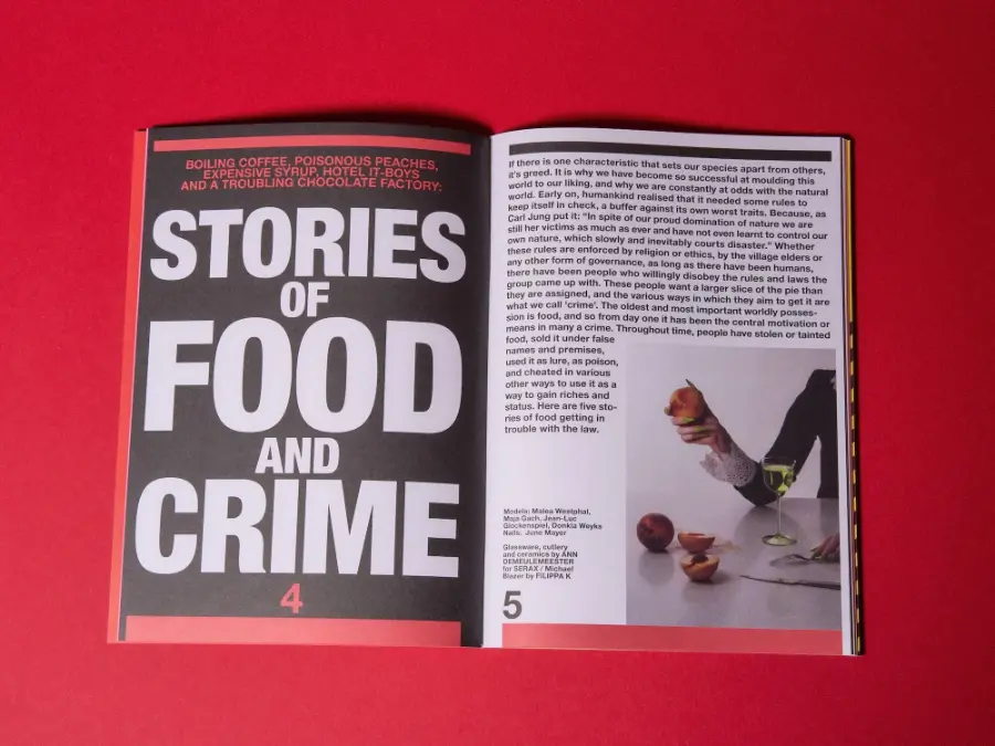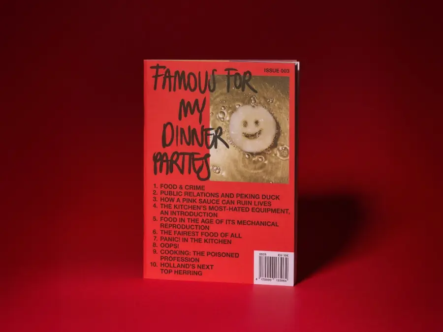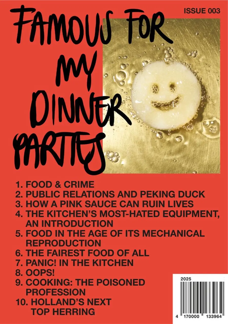famous for my dinner parties is back for issue 003! After the ‘best-of’ character of issue 001 and the mono-themed ‘food fad issue’ 002, number three is again somewhat more loosely conceived — less of a theme issue than a concept zine that aims to tap into certain elements of the zeitgeist. It consists of ten brand-new pieces in the form of essays, compilations of shorts, a still life series and even fiction — all circling around the anxieties of being alive in the world today and the way they reflect in what and how we eat. With pieces on chef culture, food diplomacy, paranoia about food safety, microwaves, internet urban legends and food crimes, the magazine’s graphic design takes cues from tabloid newspapers to fit the salaciousness and scandal-ridden character of its topics.