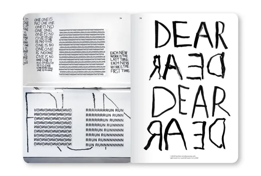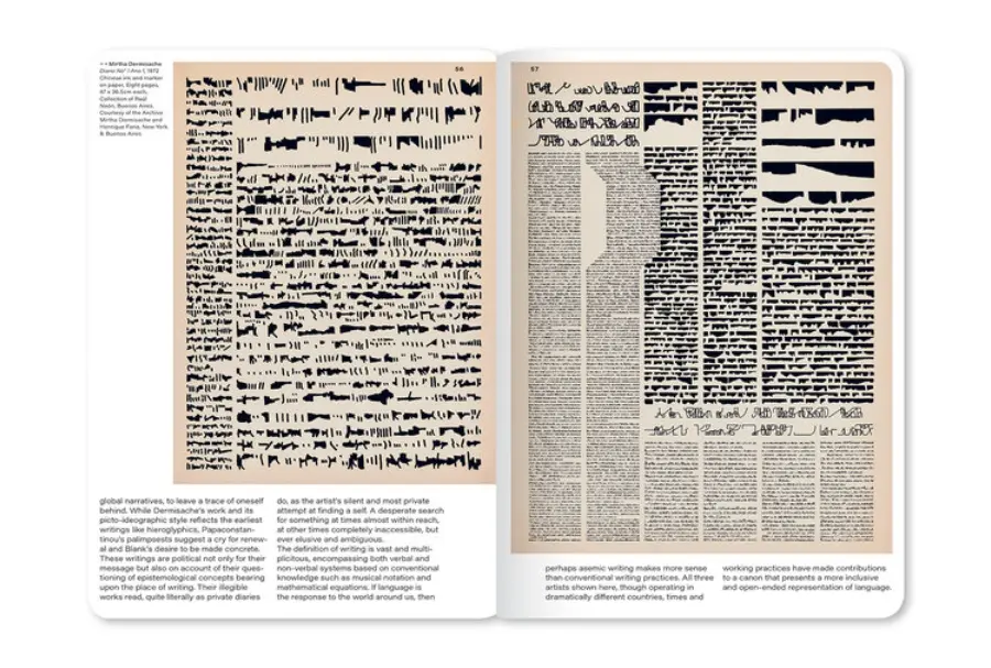 Artists: Ed Ruscha, Paula Scher, Simon Evans TM, Sketchbook Project, Irma Blank, Nina Papaconstantinou, Mirtha Dermisache, Ariane Spanier, Suzanne Treister, Karl Holmqvist, Pavel Pepperstein, Ingwill Gjelsvik, Marco Raparelli, Nadine Fecht, Shantell Martin, Katrin Ströbel, Xu Bing, Paula Troxler, Mark Lombardi, Stefan Brüggemann, Sol LeWitt, Pae White, Malgorzata Zurada, Philip Loersch, Stefan Marx, Prinzhorn Collection, Roni Horn, Peter Phobia, Annie Vought, Henri Chopin, Petra Schulze-Wollgast, Thomas Broomé, Meg Hitchcock, The Voynich Manuscript.