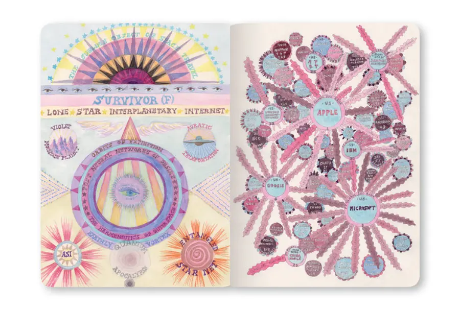 You can also enjoy the mystery of the undecipherable Voynich Manuscript, get lost in Paula Scher’s sensible typographic maps or Mark Lombardi’s political diagrams and immerse yourself in the Prinzhorn Collection’s remarkable artworks – a collection produced by psychiatric patients. Read interviews with our featured artists such as Stefan Marx, Annie Vought and Suzanne Treister to learn why Marx hates Sundays so much, how Vought makes use of social media in her work, where the idea for Treister’s time travelling avatar came from and much more.