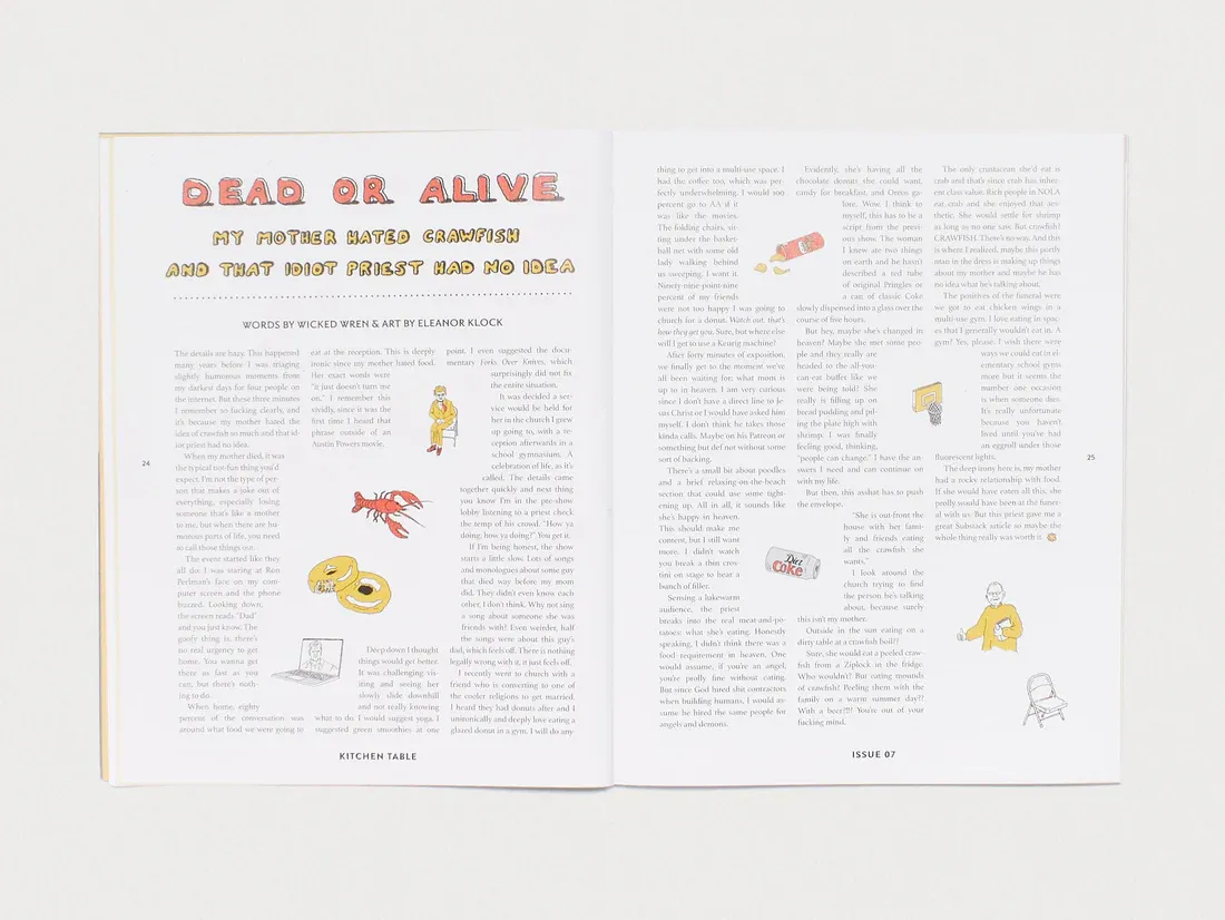 Things are so weird out there, we can’t accurately predict next week, let alone ten or twenty years down the road. And yet, here at Kitchen Table, we believe in a brighter future and see the potential for resistance and change that exists within ourselves and our communities. So in this world where the future is so uncertain, The Future Issue serves up a feast of ideas, stories, and art to help us imagine what’s next. Join us in shaping the future—one page, one meal, and one conversation at a time.