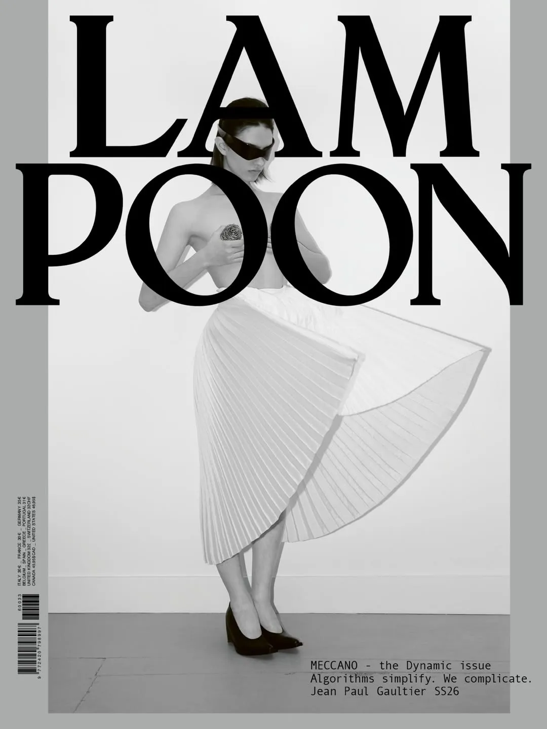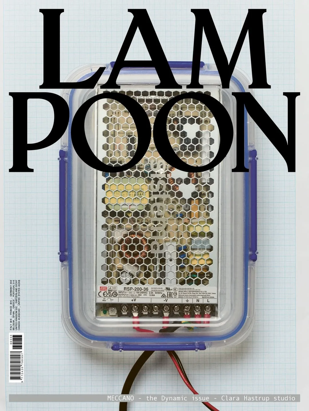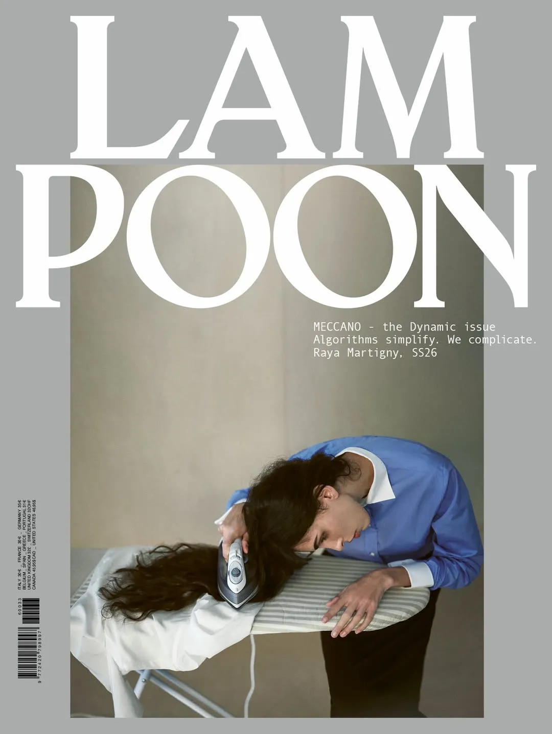 Lampoon Issue 33, titled MECCANO, is a print publication structured around systems, machines, and human cognition under technological pressure. The issue examines the relationship between artificial intelligence, labor, and cultural production, positioning thought as an act of resistance within environments optimized for attention and simplification.