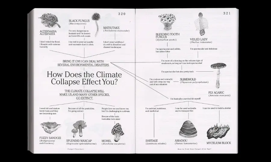 Every chapter is phrased as a question. They do not lead to answers, but to twelve teachings addressing for instance collaboration, decoloniality, non-linearity, toxicity, mobilization, biomimicry, death, and being non-binary. Simultaneously it ventures deeper into the world of fungi. The teachings from the fungus may inspire artists, collectives, organizations, educators, policy-makers, designers, scientists, anthropologists, change-makers, curators, urbanists, activists, gardeners, community-leaders, farmers, and many others, to become more fungal in their ways of working and being.