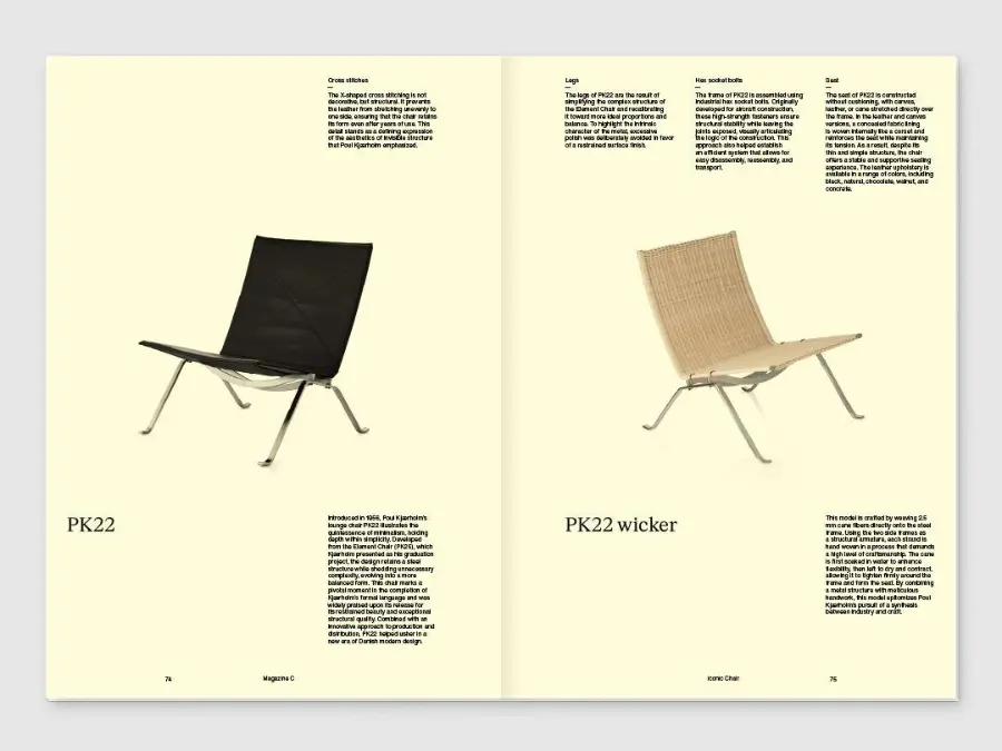 Magazine C, co-created by Grandeclip and brand-based periodical Magazine B, is a documentary magazine that focuses on one iconic chair in every issue, introducing the design and lifestyle people build around it.