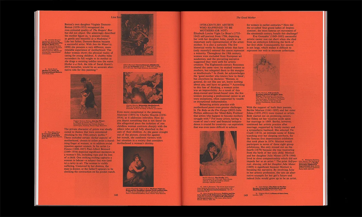 Motherhood is a theme that stands at the core of life, but has nevertheless been kept in the private sphere for a long time, haunted by clichés, stigmas and myths. Motherhood has always been seen as trivial, not as a subject for real art. At the same time, artists with a womb have faced the cliché that they had to decide between making art or having a child, as both would take up all the mother’s time and energy.