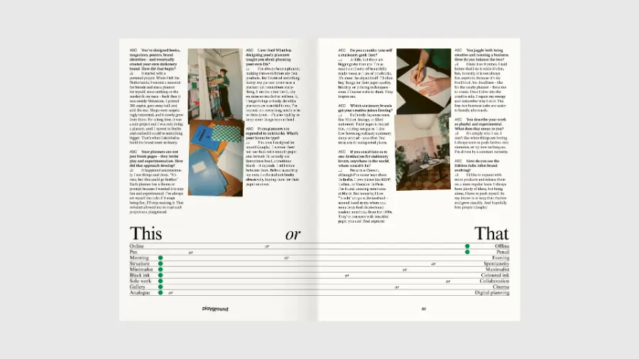• Conversations with creatives: DJ and producer Axel Boman on intuition and improvisation; Julie Joliat on turning stationery into self-expression; and architects and artists on play and experimentation
