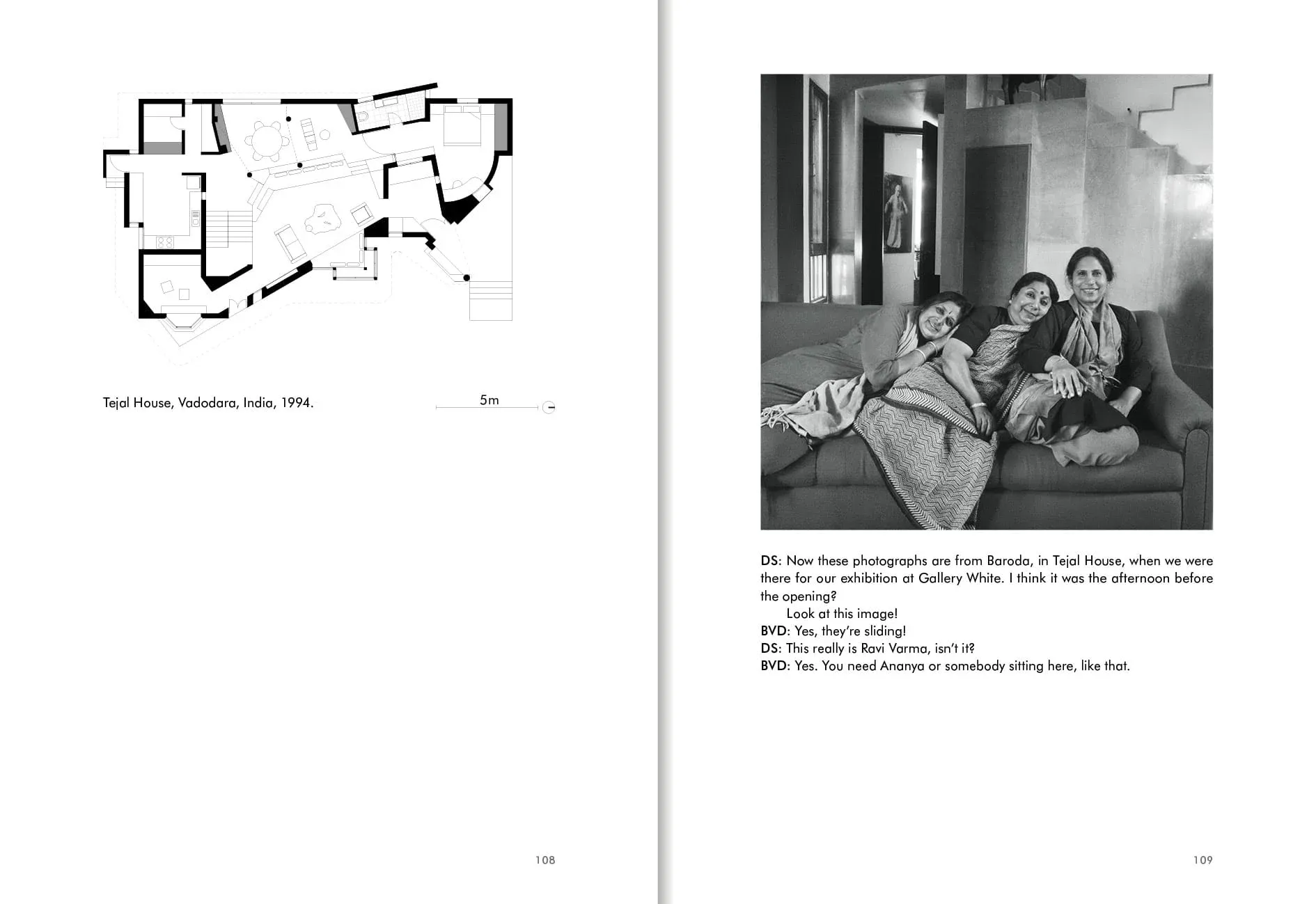 Portrait of a House: Conversations with BV Doshi draws the celebrated architect into conversation with the photo artist Dayanita Singh in an exploration of the kindred alchemy of their creative practices. Beginning when she first photographed him in his famed Kamala House (Dayanita’s ‘favourite temple of light’), named after BV’s wife, the book spans years of their conversations, presented alongside black-and-white portraits of the space filled with family. In a collaborative exchange, BV responds directly to these photographs, revealing hidden motivations behind his architectural innovations. At its core, Portrait of a House is an exploration of light, movement, and a home’s capacity to guide its inhabitants, at turns lulling them to sleep or sparking them into animated conversation.