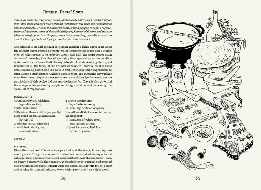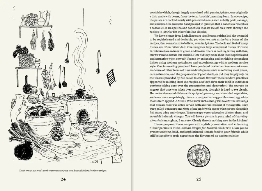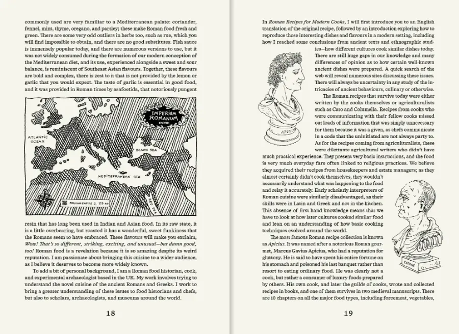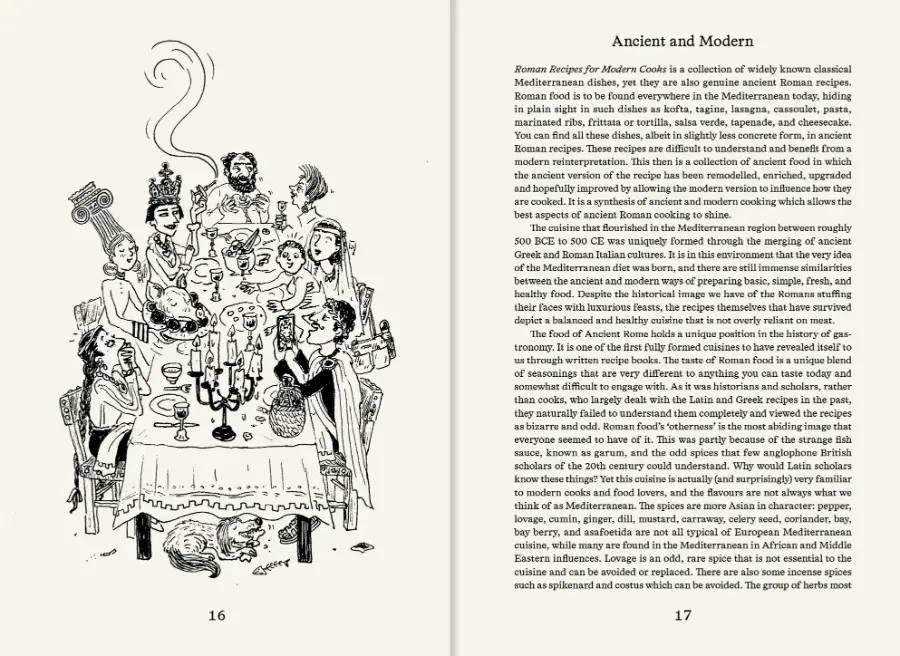 Sally Grainger’s Roman Recipes for Modern Cooks offers 34 contemporary interpretations of recipes taken from Latin texts, presenting a perfect blend of ancient and modern cooking. Setting aside more outlandish Roman luxuries such as dormice, crane, or flamingo, these recipes are down-to-earth classics: Duck with Turnips, Cheesecake, Salsa Verde with Mullet, Kidneys Stuffed with Pesto, and Cumin and Honey-roasted Root Vegetables. Filled with historically inspired line drawings by award-winning illustrator Joana AvillezRoman Recipes for Modern Cooks is a uniquely delightful cookbook with a time-honoured twist.