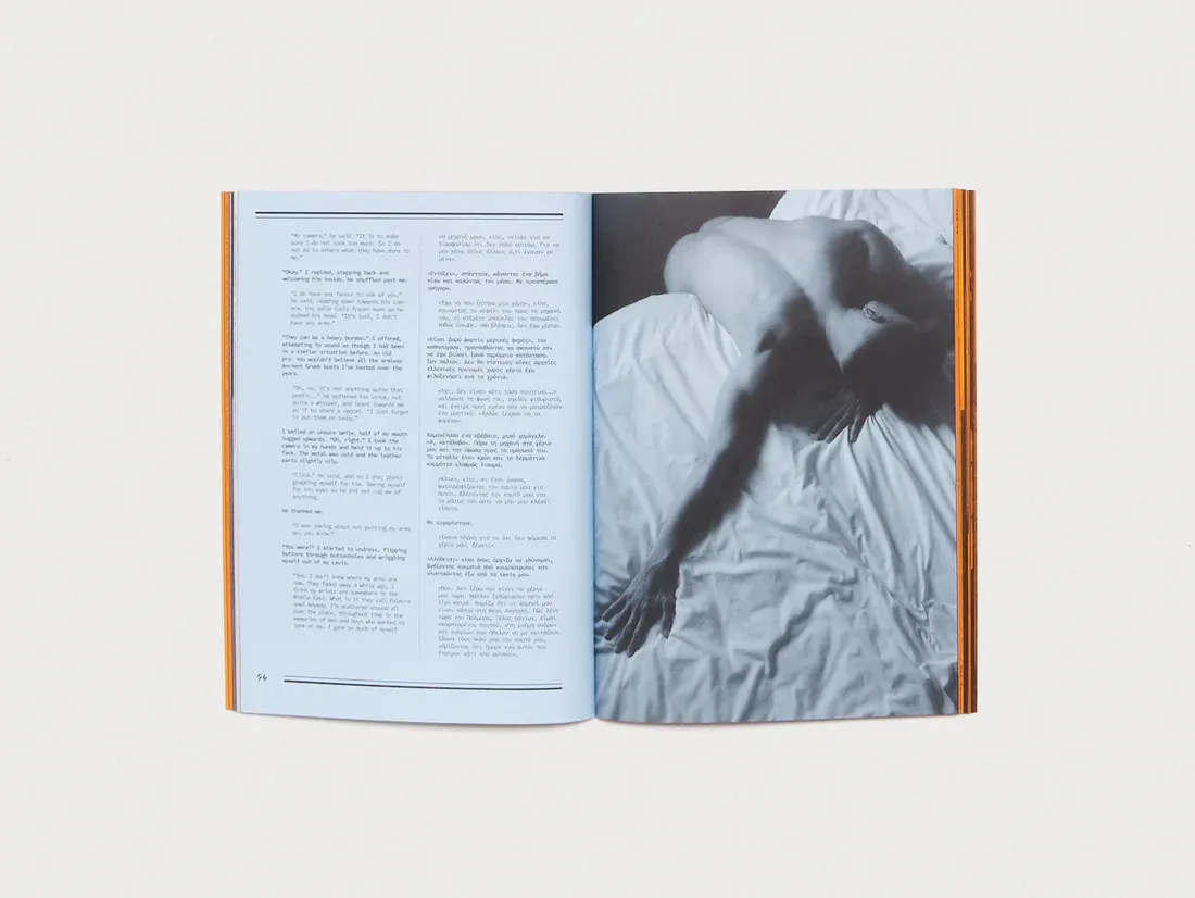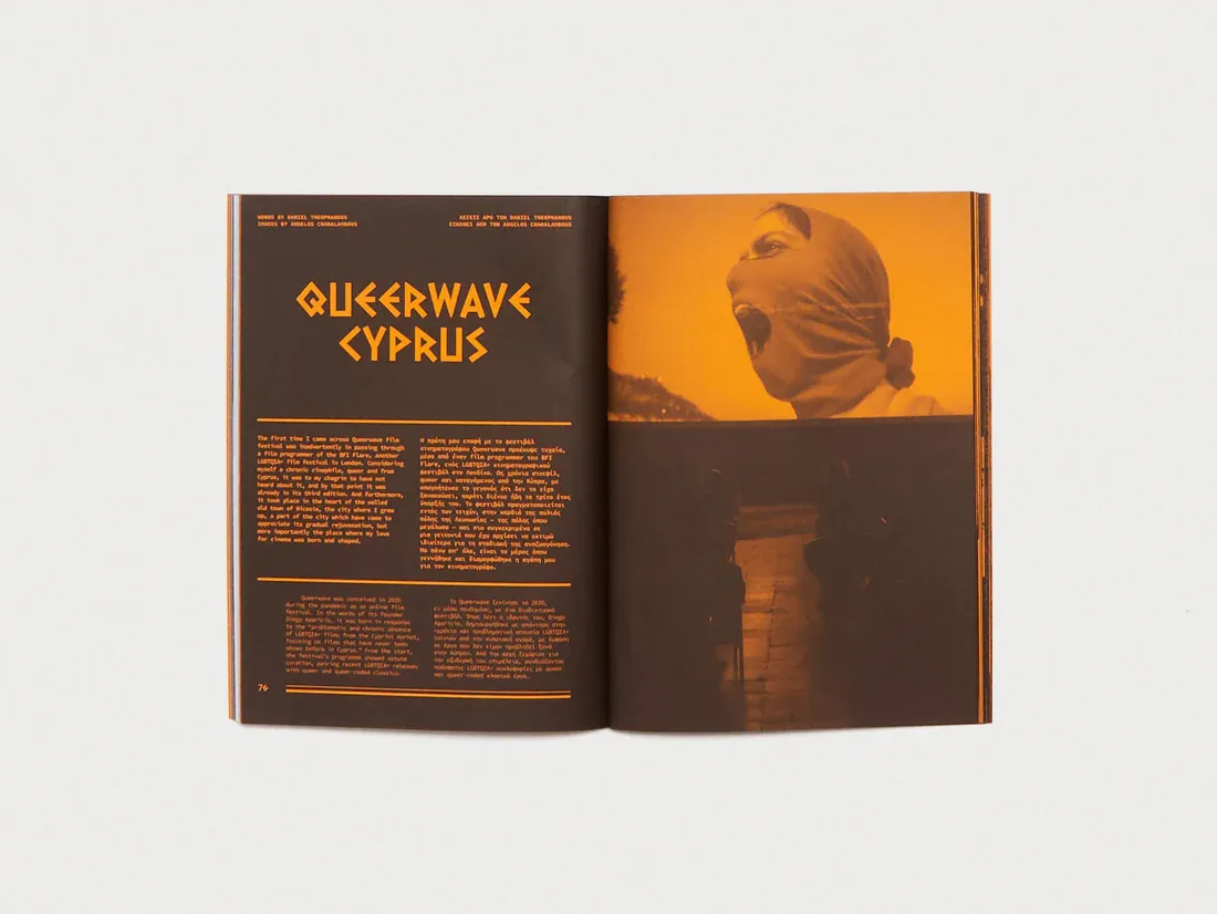 On still-warm bedsheets, Nathan Korn’s protagonist grapples with the stone-cold body of a Grindr hookup – a moment captured in film by London-based photographer Manos. Further on, lover, writer, and adventurer John Thomas leads a journey through Greece and beyond, in search of a place his heart might finally call home. To the Southeast, within the embrace of Nicosia’s Old Town Walls, Daniel Theophanous bears witness as the Queerwave film festival brings together communities long divided by decades of polarisation.