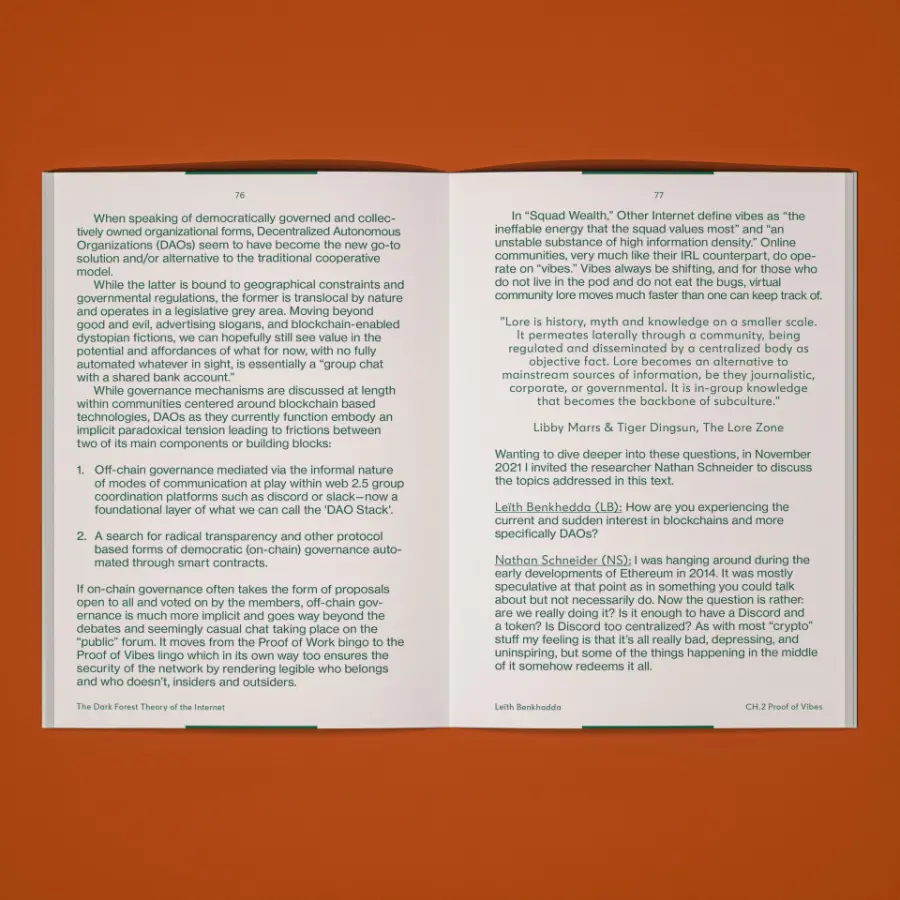 The eleven authors include: Yancey Strickler (Kickstarter/Metalabel); Venkatesh Rao (Ribbonfarm); Maggie Appleton; Peter Limberg and Rebecca Fox (The Stoa); Joshua Citarella (Do Not Research); Arthur Röing Baer and GVN908 (Moving Castles); Leith Benkhedda (DNR, Trust, and New Models); and Caroline Busta and Lil Internet (New Models).