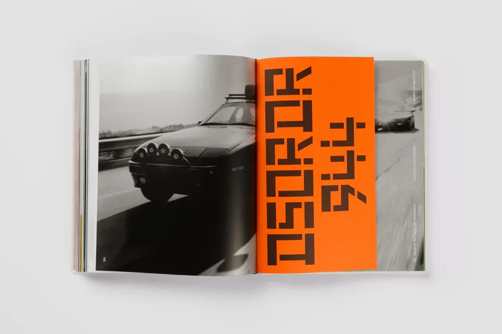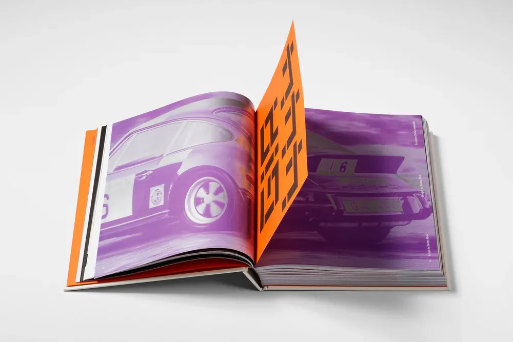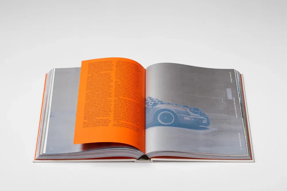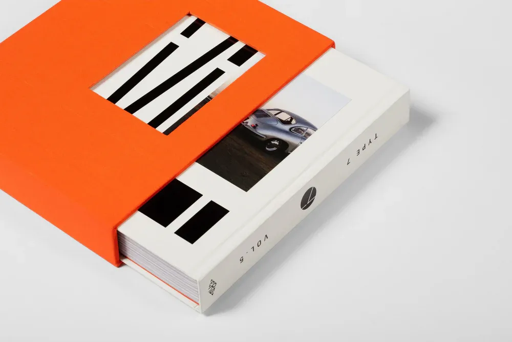 Published in limited edition, unravel the uniquely-designed cardboard tear strip in the shape of the Type 7 logo and unveil the striking orange slipcase beneath. Reflecting the five years of Type 7, five unique artworks from creatives spotlighted within the book are featured on the cover; Brittany Fanning’s instantly-recognisable surrealist style features a cat lazily perched on the hood of a Porsche 911, DC Shoes co-founder Damon Way’s Joy Division-inspired Porsche 944 awaits its next drive, a 911 rev limiter races towards the redline, Aiden de Cadenet’s heirloom Porsche 356 soaks in the sunset on Mulholland Drive, and a renowned historic Porsche 911 rally car attacks a stage in a historical photograph. Metallic inks and tip-in pages weave through the book, creating an experience as surprising as the stories and rich photography within.